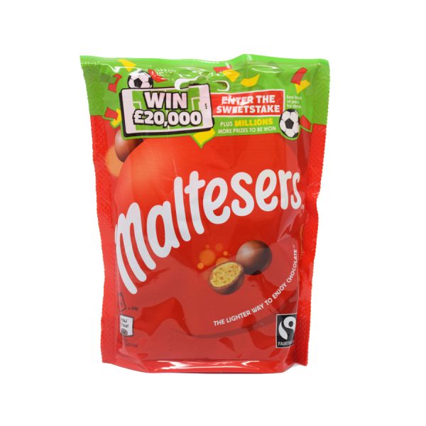 Maltesers Chocolate Pouch 102g offers the classic taste of airy, crunchy malt pieces covered in silky milk chocolate. Loved worldwide for their addictive lightness, Maltesers are the perfect balance of sweetness, crunch, and melt-in-the-mouth texture.