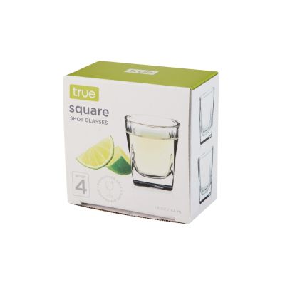 Add a touch of contemporary style to your home bar with these square shot glasses. This set of 4 sleek, durable glasses is perfect for serving tequila, whiskey, or layered shots, and their unique square base brings a modern twist to any occasion. Dishwasher safe for easy cleaning, these versatile shot glasses are ideal for both parties and everyday use. Set of 4 shot glasses Holds 1.5 oz of your favorite spirit Durable glass construction with square base Dishwasher safe for effortless cleanup Perfect for home bars, parties, and gifting